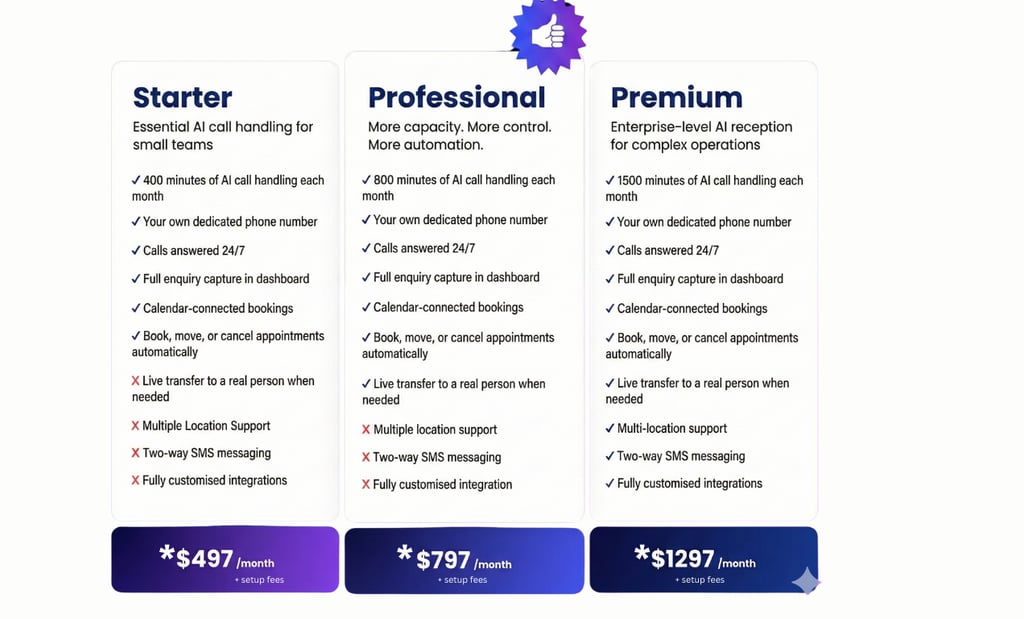 ✓ 1500 minutes of AI call handling each month
