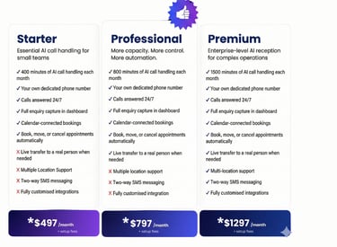 ✓ 400 minutes of AI call handling each month.